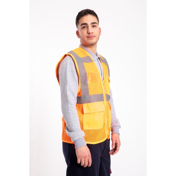 Mühendis modeli cepli yüksek çözünürüklü ikaz yeleği.