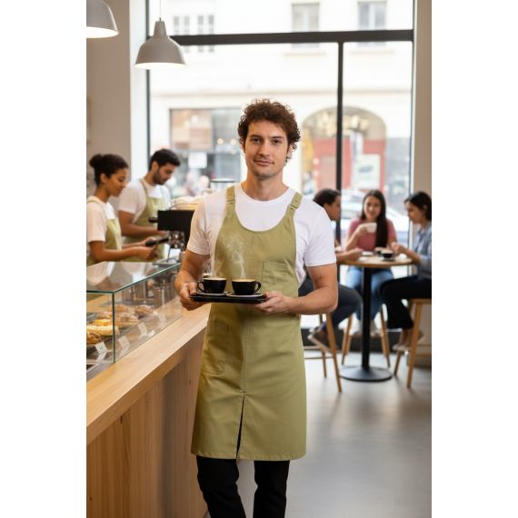 Mutfakta, atölyede veya baristanızda... Nerede olursa olsun, hem korunun hem de şıklığınızdan ödün vermeyin! Profesyonel Haki Yeşil Önlüğümüz ile fark yaratın.