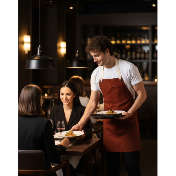 Koyu kahve tonlarından, doğal bejlere kadar uzanan renk seçeneklerimiz ve vintage esintili, sağlam kumaşımızla barınızın ambiyansına mükemmel uyum sağlayın. Bırakın önlüğünüz, döktüğünüz her kahve çekirdeği ve yaptığınız her latte art kadar dikkat çekici olsun.