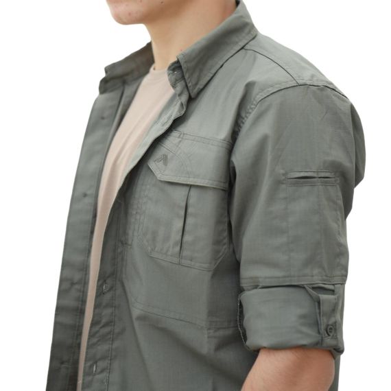 - Gömlek tasarımda 2 adet kapaklı cep, iki adet gizli cep ve ihtiyaç anında kol katlamasının sabitelenebilmesi için kol katlama sabitleyicilerine sahiptir.